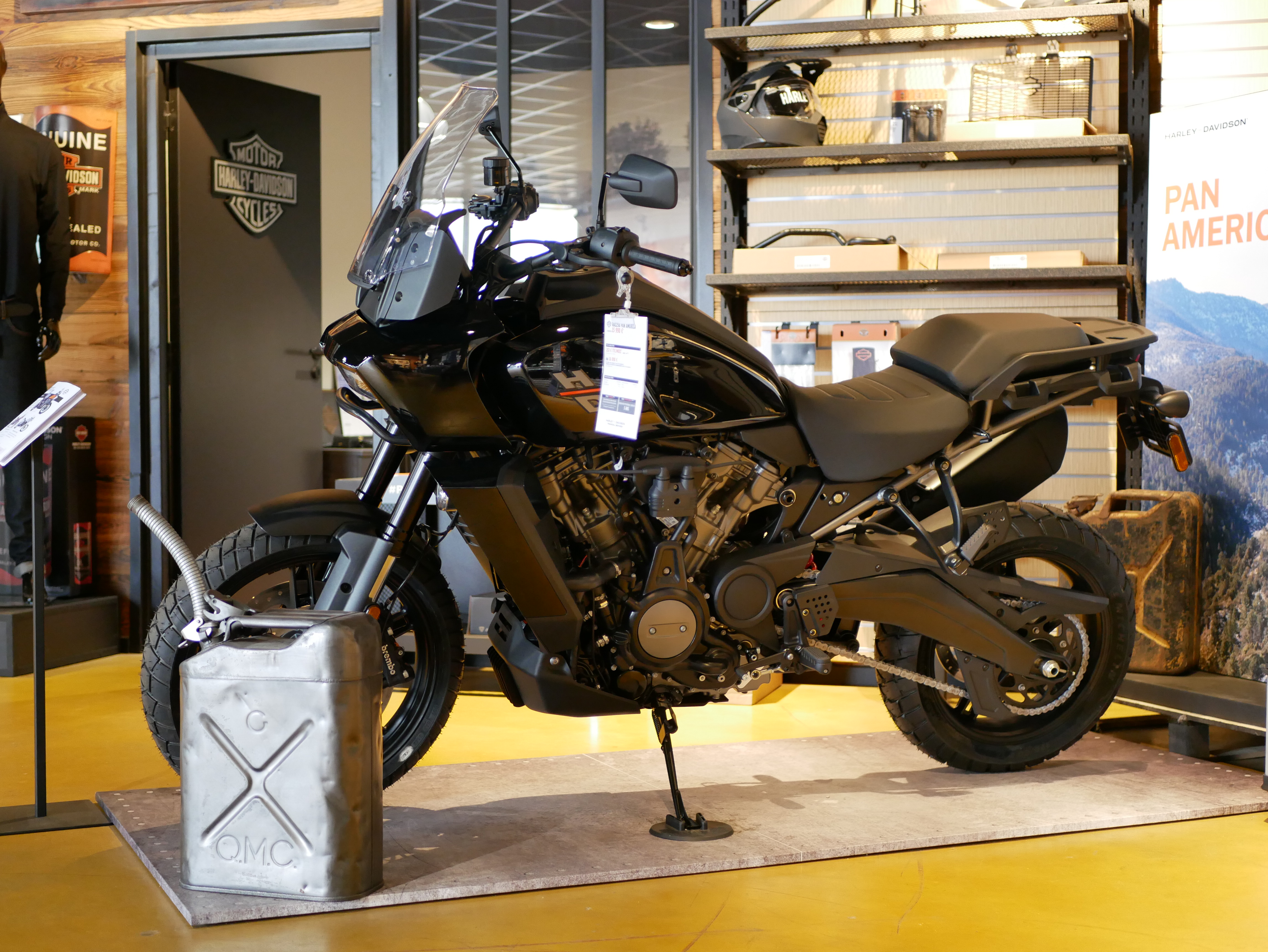 Le magasin est magnifique, il y a des motos Harley pour tous les goûts et tous les prix, il y a un bar avec billard et flipper, des vêtements, des accessoires, des casques et même un coiffeur barber, le tout pour devenir un vrai biker.